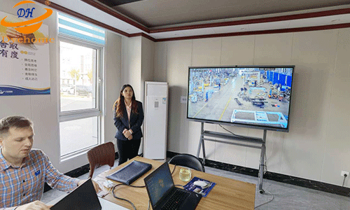In the conference room of Dyehome Company, Miss Angela showed the workshop overview through the large screen networking function.