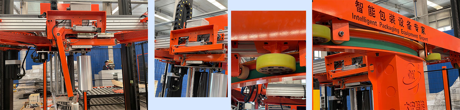 Save packaging cost for enterprises Packing method can be arbitrarily selected Allow the film prevent the film from loosening Faster speed, safer use, and almost zero failure rateRing body uses the unique design, the service life is longer Automatic feed film clip film, automatic welding film, no film tail |