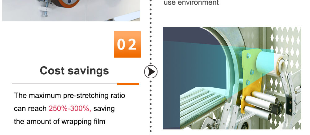 | Film pre-stretch | 150-250% | Mode of driving | Roller/chain/belt/chain plate |